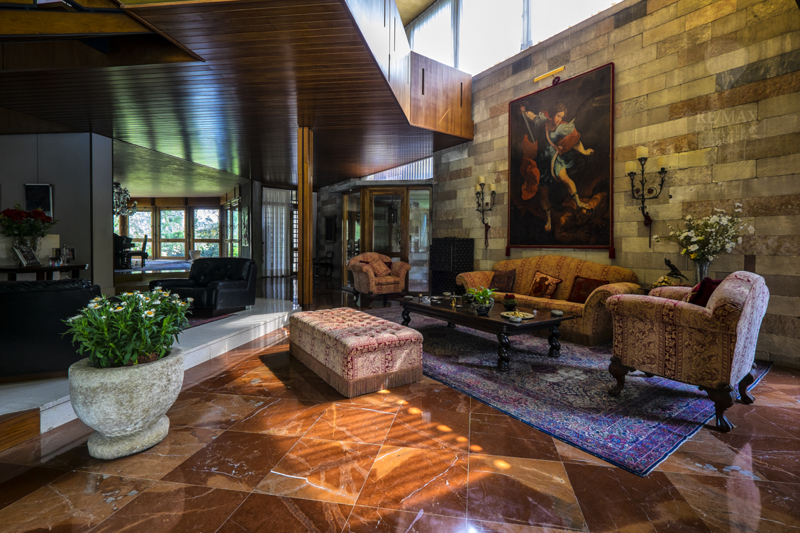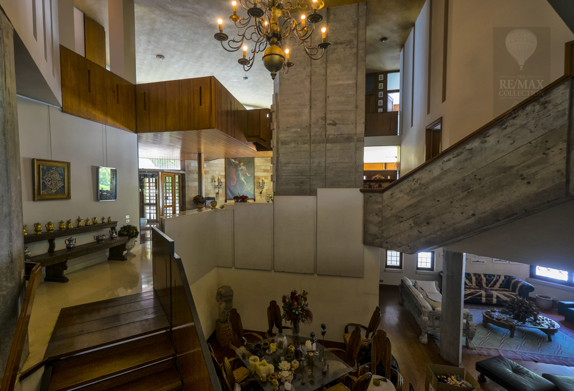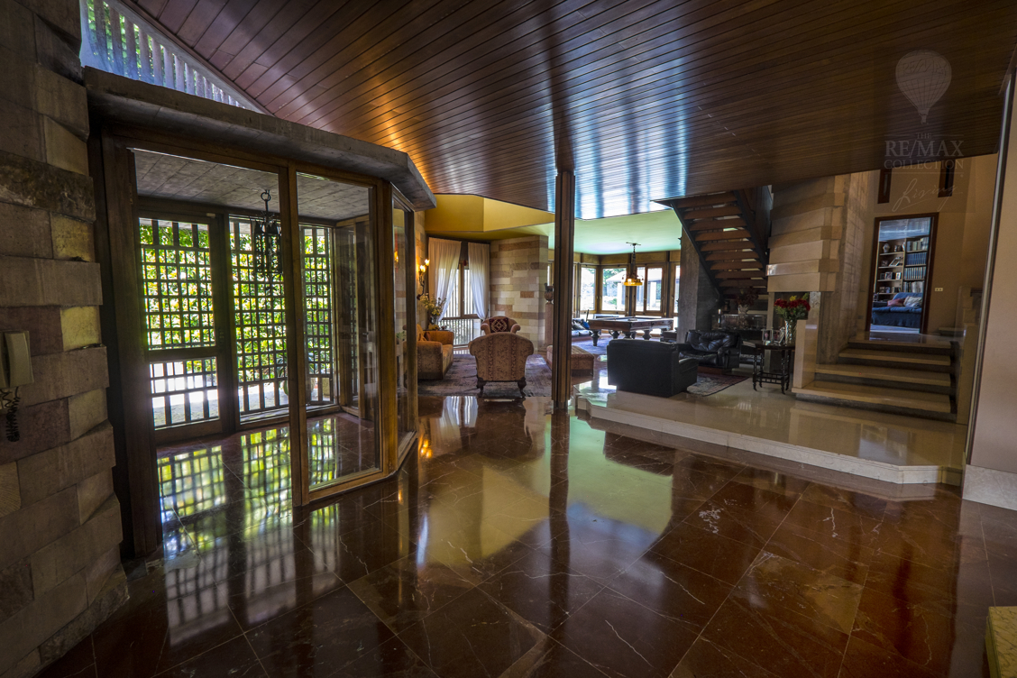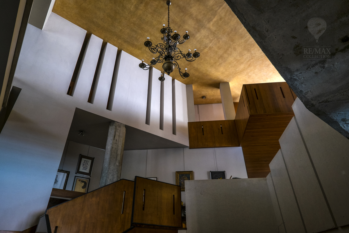 Diese Immobilie von einzigartigem und absolutem Prestige wurde auf 3 Ebenen gebaut, mit Blick auf einen großen zentralen Innenraum, in dem man den Stil des Architekten Frank Lloyd Wright auf der Treppe und dem Kamin erkennen kann.