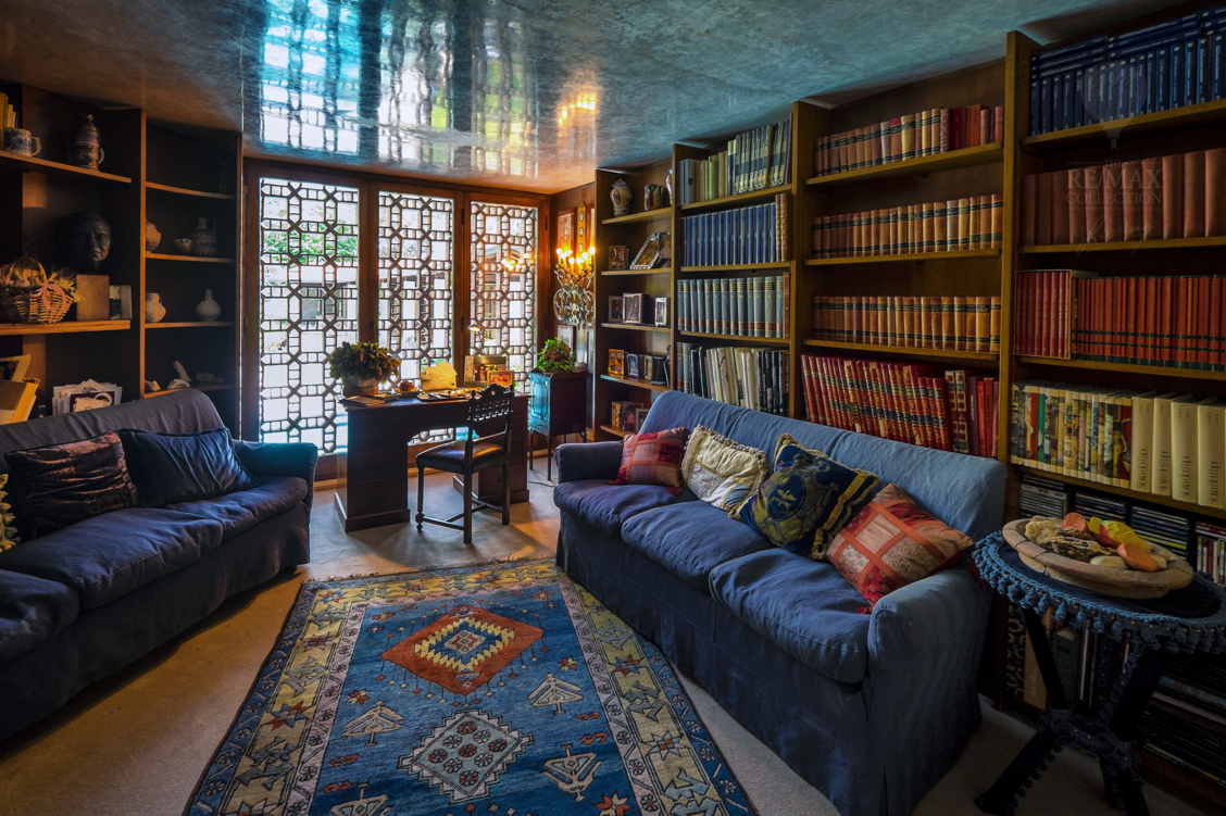 Besonders malerisch mit seinen Lichteffekten und Reflexen ist die Lounge unterhalb des Pools, in der das Wasser an die hölzernen Befestigungen der großen Glastüren und an die Steinwände schlägt.