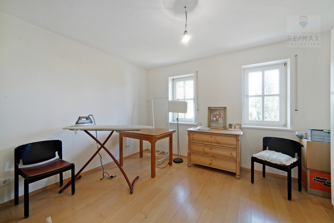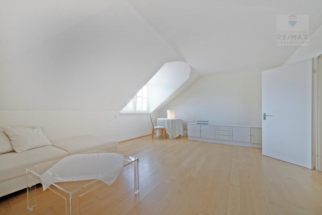 Über eine ausziehbare Holztreppe gelangen Sie in den Speicher inkl. Licht- und Stromanschluss, Dachfenster und Holzboden.