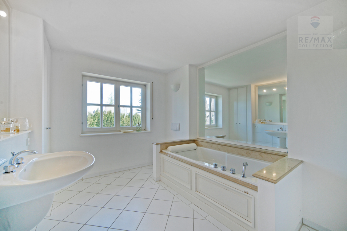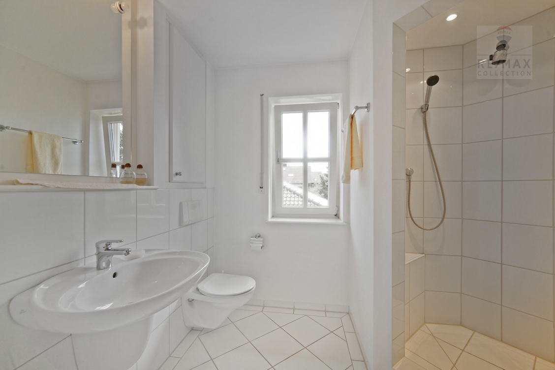 • Drei weiß geflieste Badezimmer und ein zusätzliches Gäste-WC