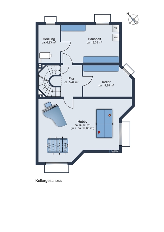 • Vollständig ausgebauter Hobbyraum und Lichtschächte im gesamten Kellergeschoss