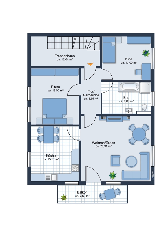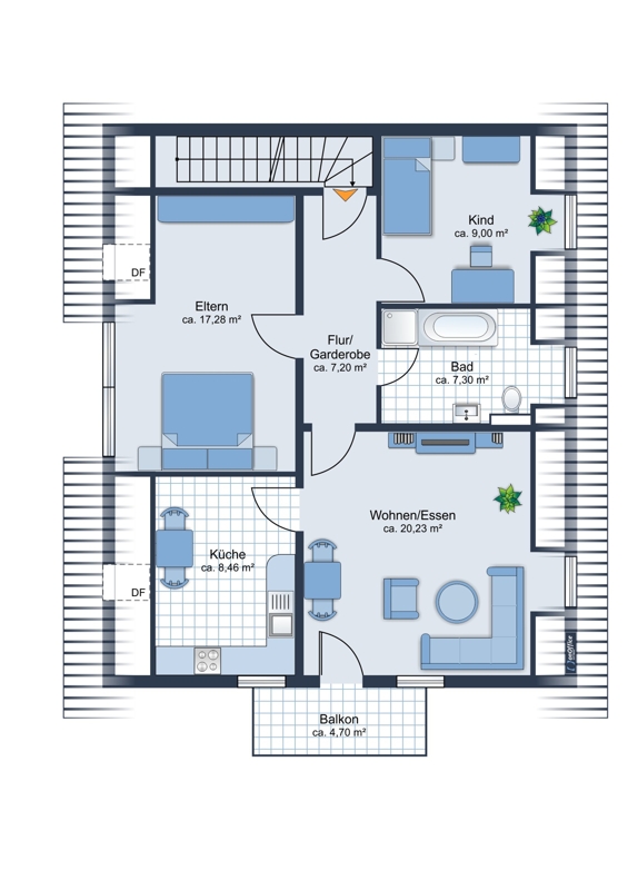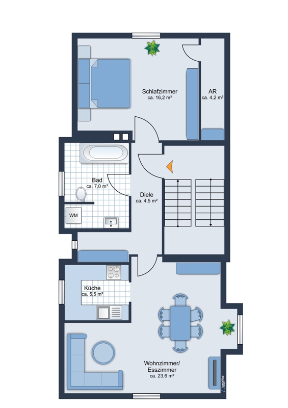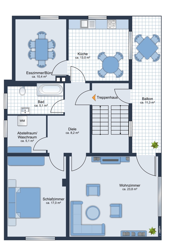 OG: 3-Zimmer-Wohnung mit Balkon