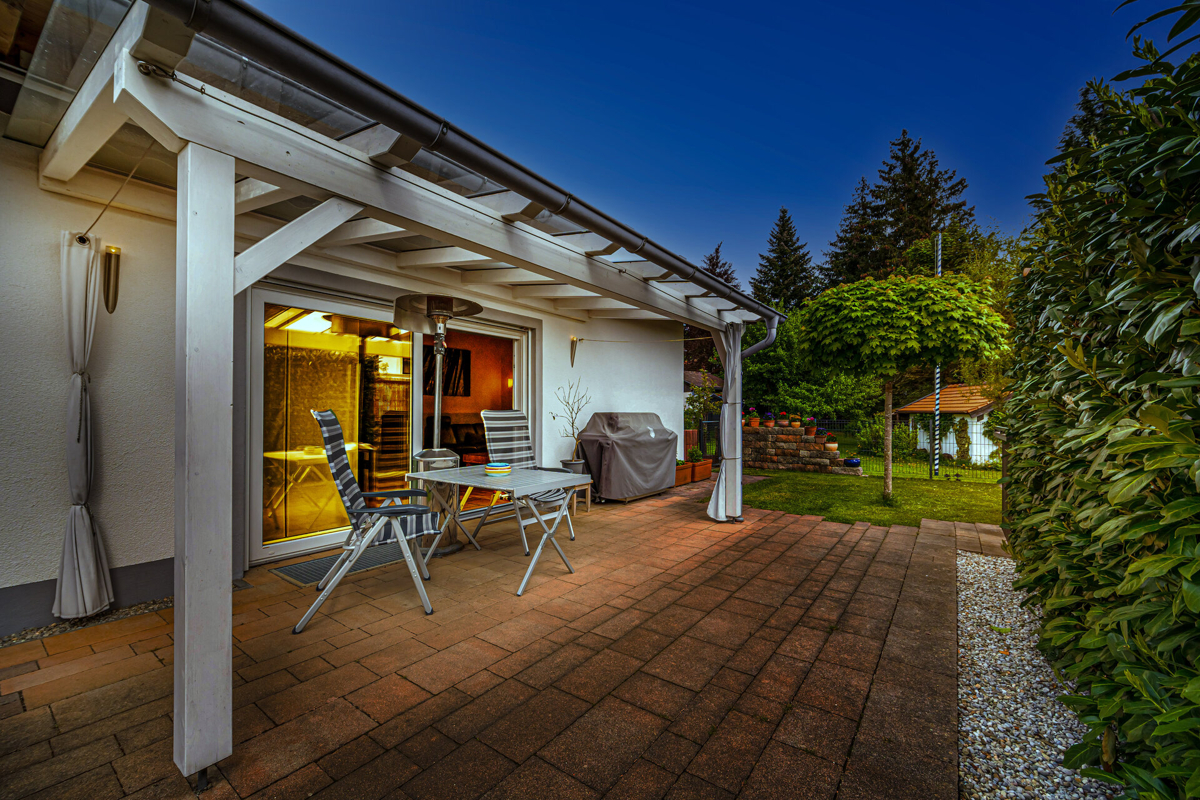 Der Außenbereich lädt mit einer gepflegten Gartenfläche zum Entspannen und Verweilen ein. Hier können Sie sonnige Tage genießen oder gesellige Abende mit Freunden und Familie auf der großen Südterrasse verbringen. Dort befindet sich auch ein großes Wasserfass mit Sitzgelegenheit -> für die schnelle Abkühlung zwischendurch. Ein Gartenhaus bietet Platz für Outdoor-Möbel und Gartenutensilien und eine eigene Zisterne sorgt für eine ausreichende Pflanzenbewässerung.