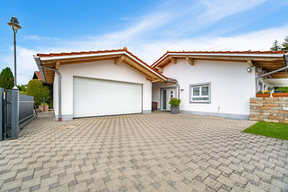 Abgerundet wird das Angebot durch eine große Doppelgarage, die 2 hohe Stellplätze für Fahrzeuge und zusätzlichen Stauraum für Sportgeräte, etc. bietet.