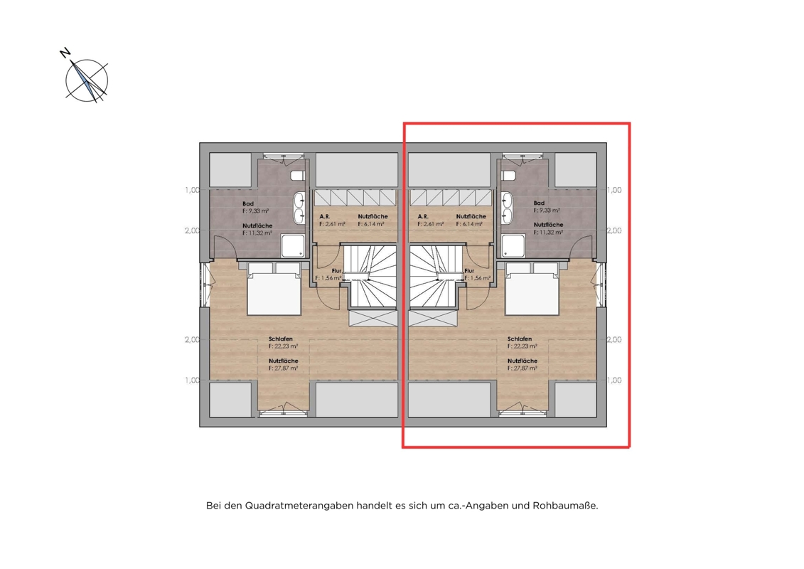 Sanitäre Einrichtungen von Villeroy & Boch, elektrische Rollläden, freitragende Massivholztreppen und individuell gestaltbare Grundrisse bieten zusätzlichen Komfort und Freiraum zur persönlichen Entfaltung. Das Grundstück ist real geteilt – ein wertvoller Pluspunkt für alle, die echtes Eigentum schätzen.