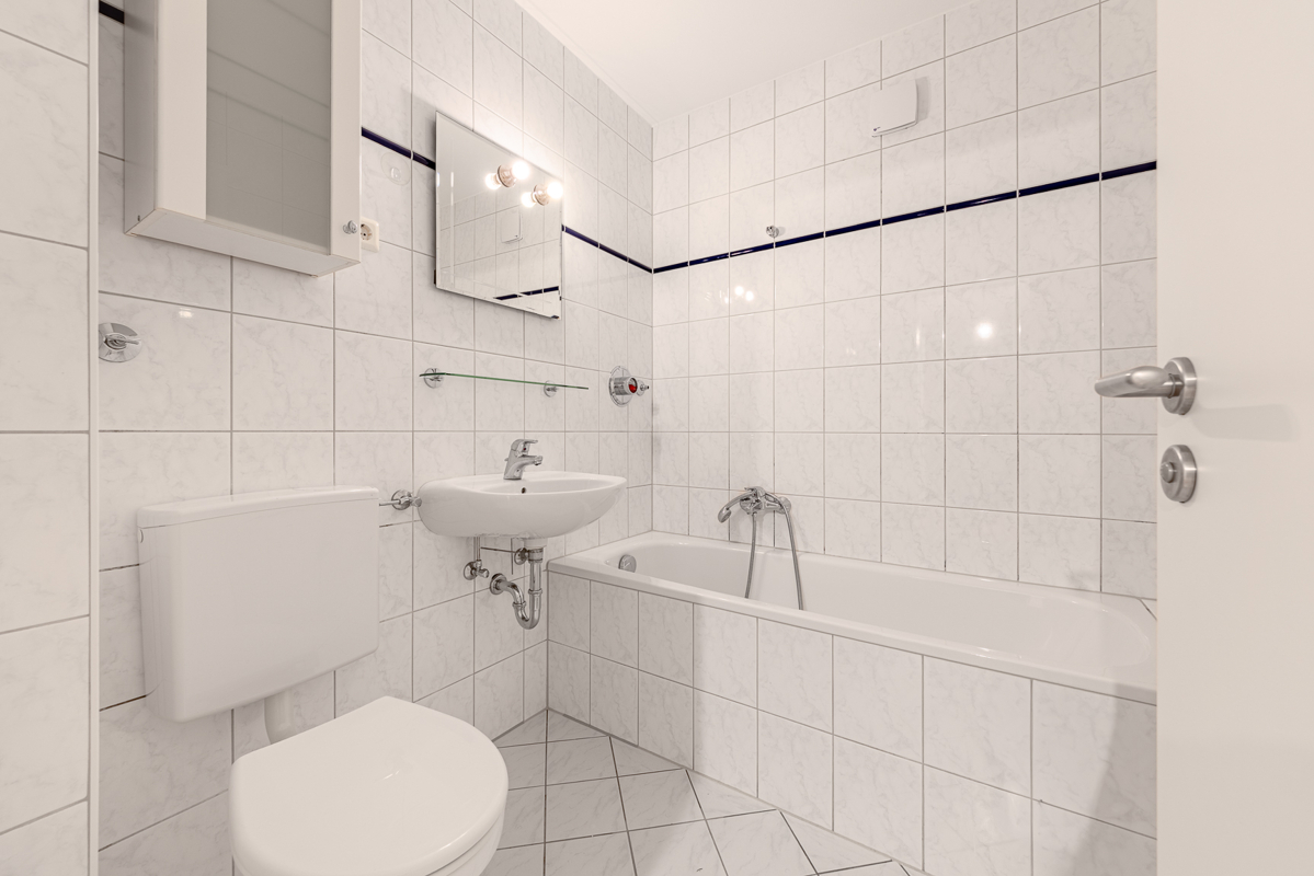 + Bad mit Waschbecken, Badewanne, WC und Waschmaschinenanschluss