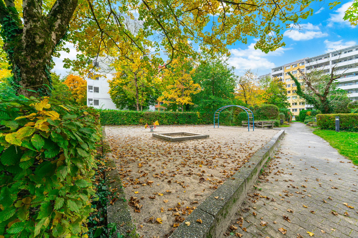 Die Wohnung befindet sich in einer angenehm ruhigen Wohnlage im Münchner Stadtteil Perlach, die mit einer guten Anbindung und einem ausgewogenen Umfeld überzeugt.Einkaufsmöglichkeiten für den täglichen Bedarf, Bäckereien und kleine Geschäfte liegen in der näheren Umgebung – ideal, um Besorgungen bequem zu Fuß oder mit dem Fahrrad zu erledigen.