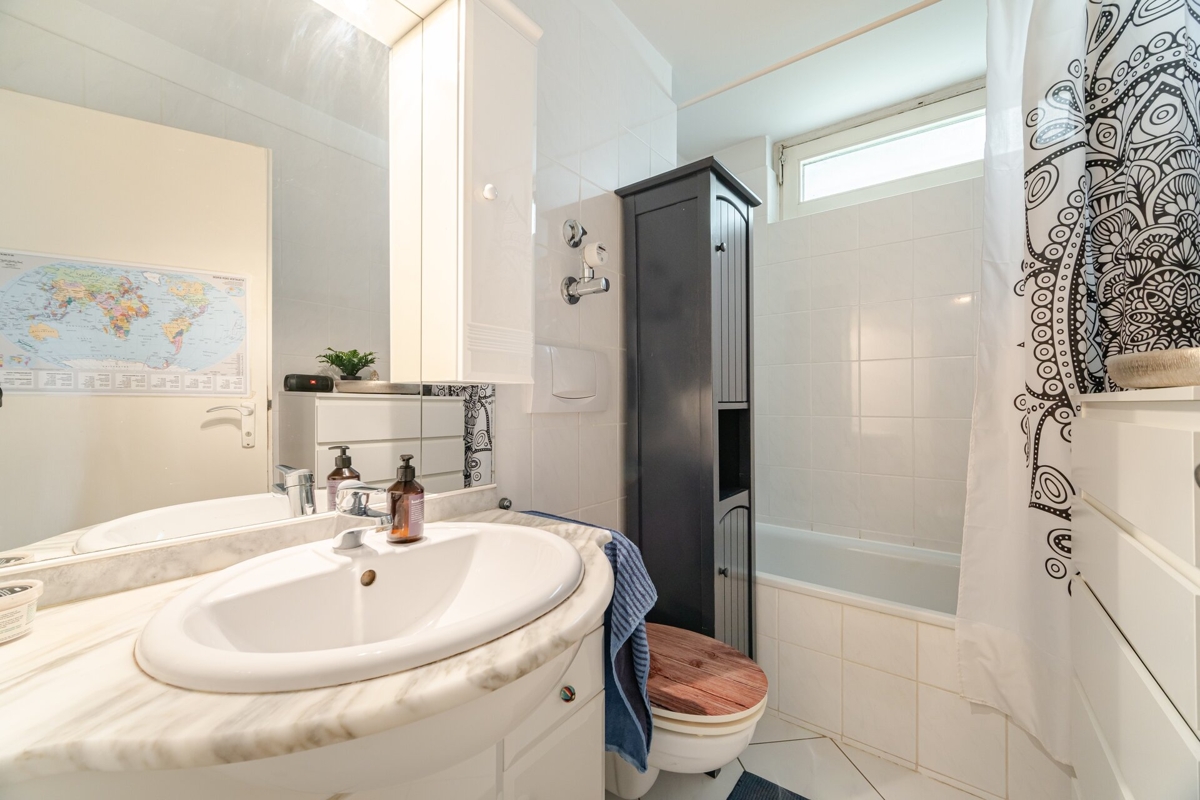 + hell gefliestes Tageslichtbad mit Badewanne