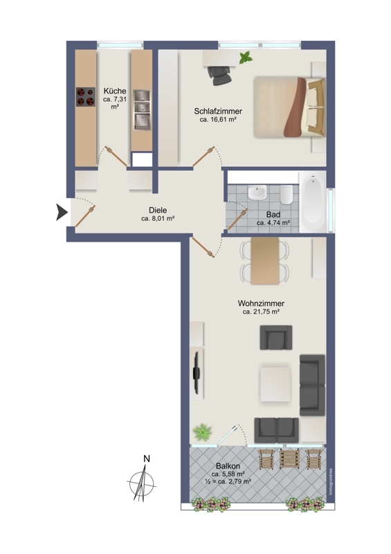 Diese charmante Etagenwohnung aus dem Jahr 1972 bietet eine gut geplante Raumaufteilung und auf großzügigen ca. 61 m² Wohnfläche ein behagliches Zuhause. Beim Betreten der Wohnung empfängt Sie eine einladende Diele, die als zentraler Knotenpunkt den Zugang zu allen Räumen ermöglicht.Die Küche ist funktional und zugleich gemütlich gestaltet, mit ausreichend Platz für kulinarische Aktivitäten und gesellige Kochabende. Hier können Sie Ihrer Kreativität freien Lauf lassen und Ihre Lieblingsgerichte zaubern.