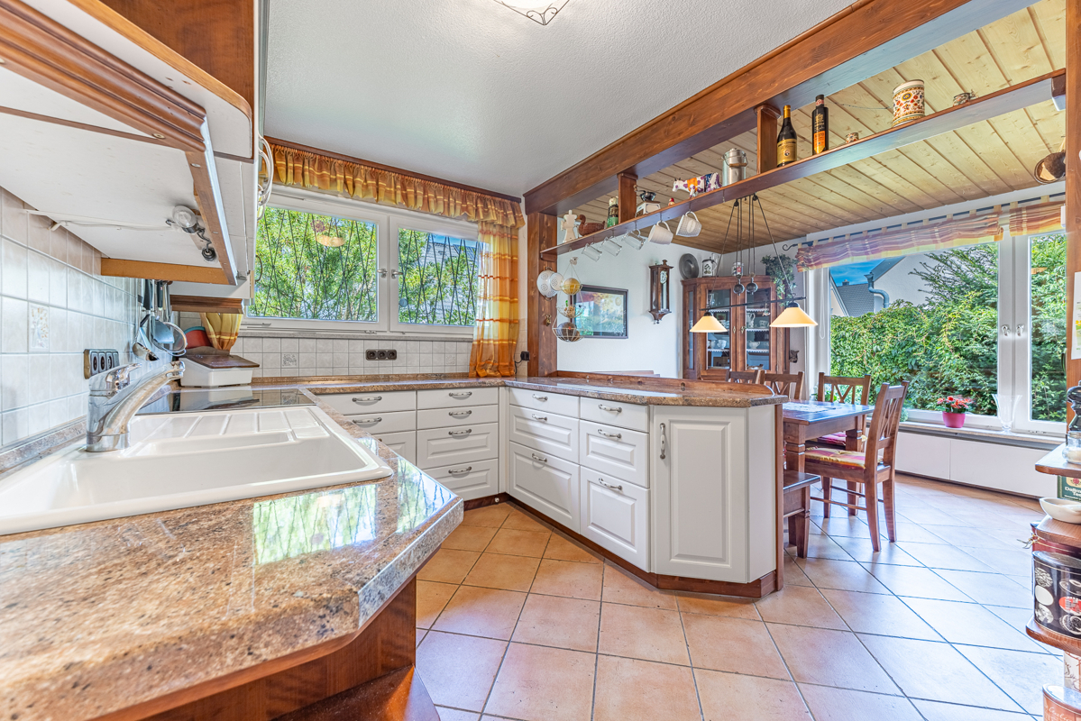 Beim Betreten dieses charmanten Einfamilienhauses werden Sie von einem einladenden Eingangsbereich empfangen, der direkt in das geräumige Wohnzimmer mit großen Fenstern und Kamin führt. Die von der Diele ebenfalls erreichbare Küche verfügt über hochwertige Geräte, überzeugt durch Ihre funktionale Aufteilung und bietet viel Raum für kulinarische Entfaltung. Der offene Essbereich schafft eine angenehme Verbindung zwischen Küche und Wohnzimmer und lädt zu geselligen Abenden mit Familie und Freunden ein.