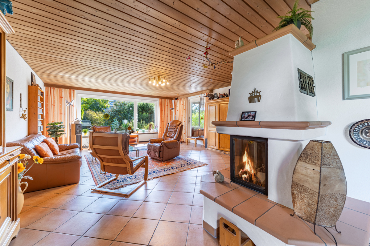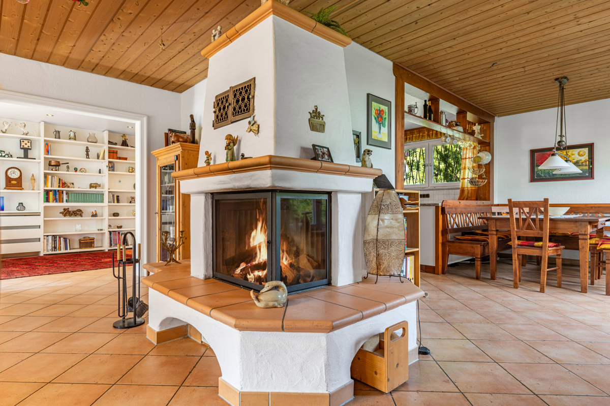- gemütlicher Kamin im Wohnzimmer