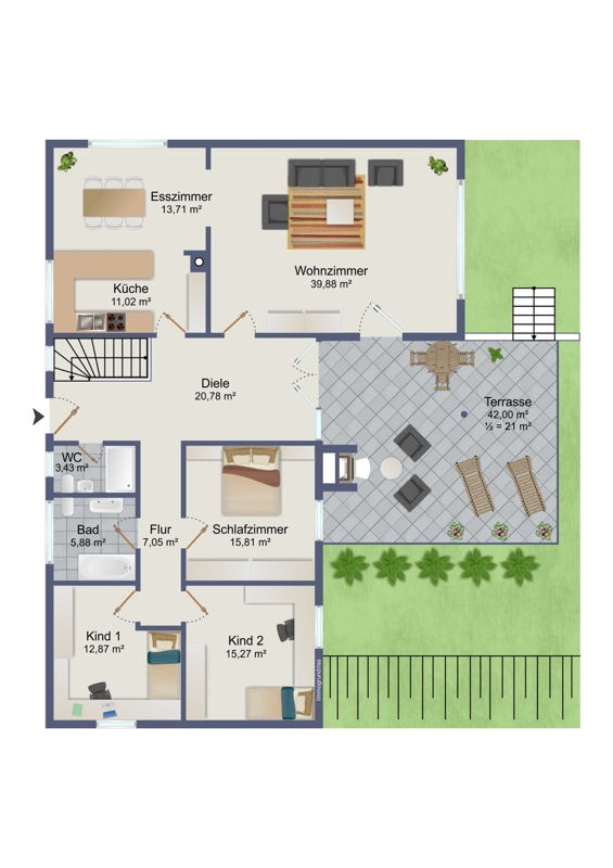 - großer, gepflegter und individuell gestaltbarer Garten
