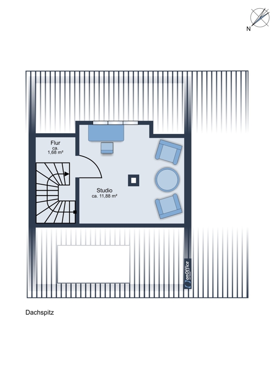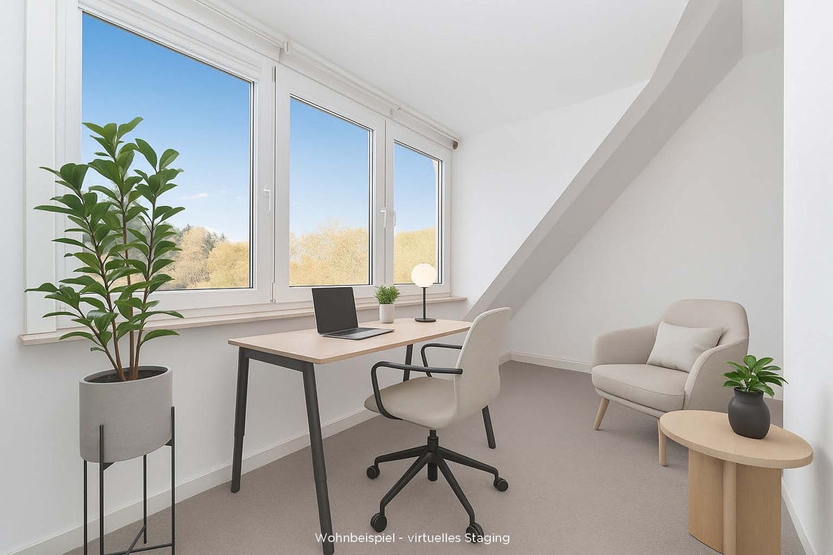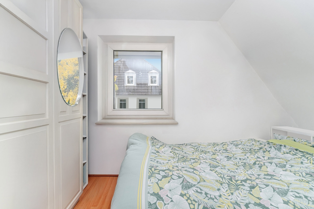 Im Dachgeschoss befinden sich zwei Schlafräume mit Fenster, sowie ein helles Bad mit Badewanne und großen Gaubenfenstern, die viel Tageslicht hereinlassen. Der ausgebaute Dachspitz bietet zusätzlichen Raum, ideal als Arbeits-, Gäste- oder Hobbyzimmer.