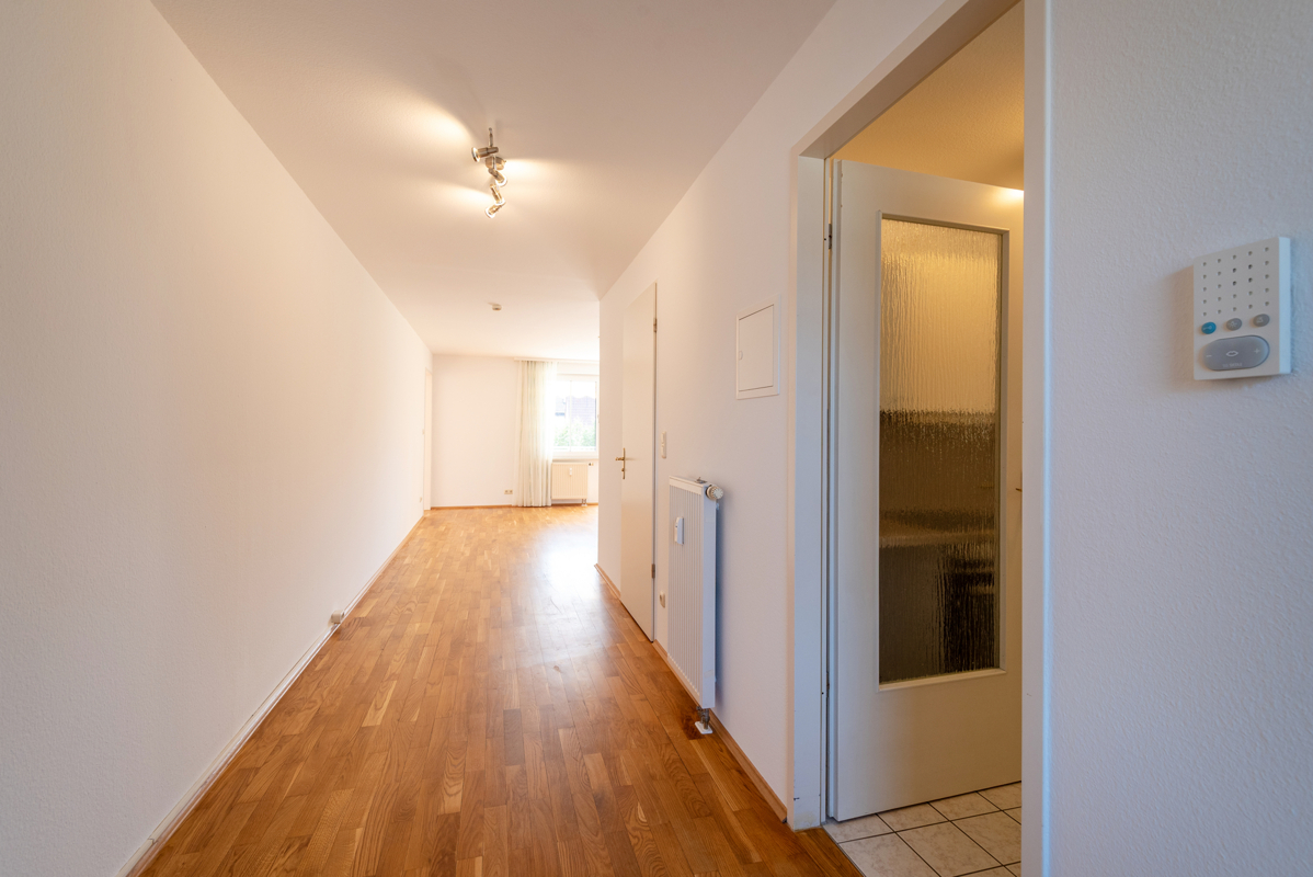 Ihre 2-Zimmer-Wohnung ist mit einer separaten Einbauküche sowie einem barrierefreien Bad ausgestattet und verfügt über einen ruhigen sonnigen Südbalkon mit elektrischer Markise und Blick ins Grüne.