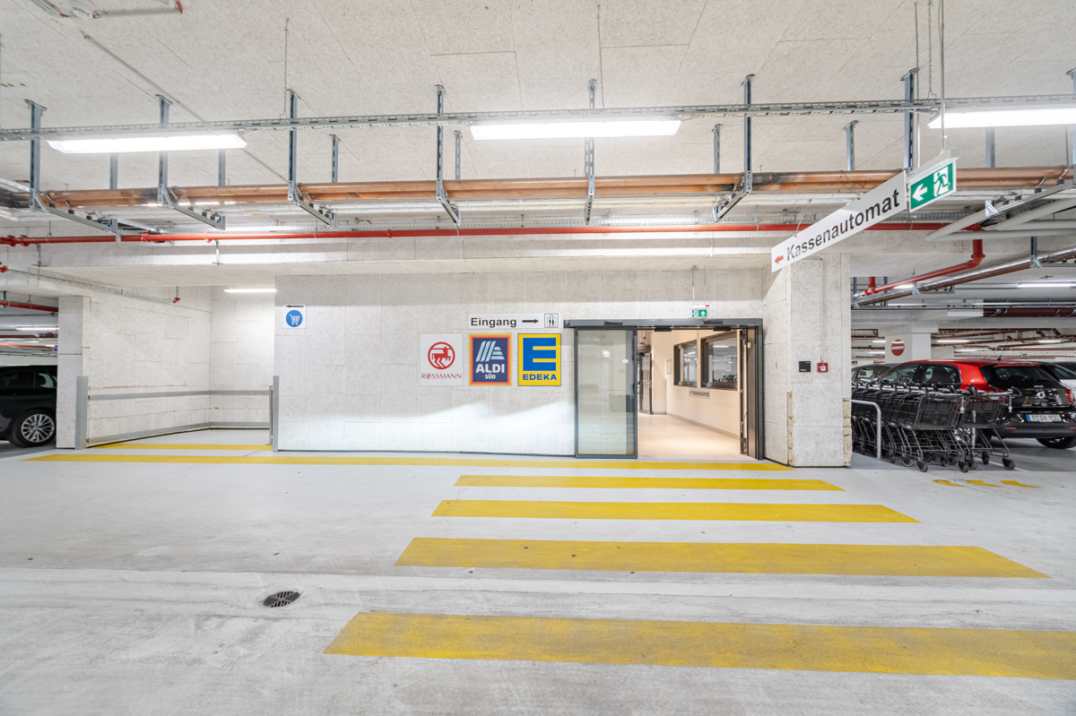 * Direkter Zugang mit dem Aufzug zu Supermärkten, Drogeriemarkt, Bäcker und Metzger
