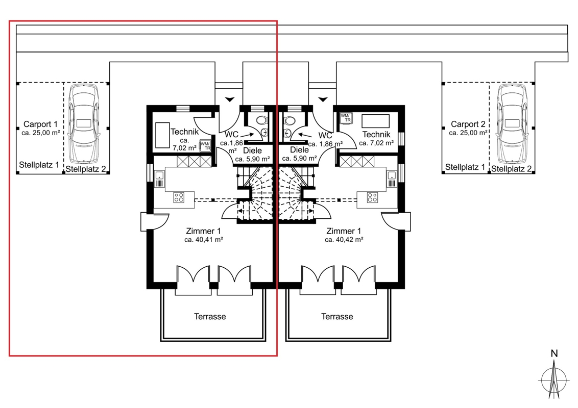 - Carport mit zwei Stellplätzen