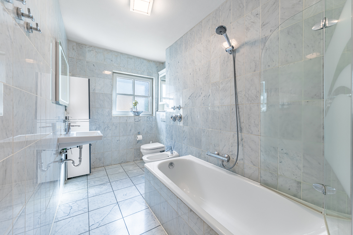Das Tageslichtbad präsentiert sich gepflegt und zeitlos, mit hellen Fliesen, Badewanne und zusätzlichem Bidet. Eine Fußbodenheizung sorgt in der Wohnung für behagliche Wärme und ein angenehmes Raumklima – auch an kühlen Tagen. Die gesamte Wohnung befindet sich in einem sehr gepflegten Zustand und vermittelt vom ersten Moment an ein Gefühl von Zuhause.