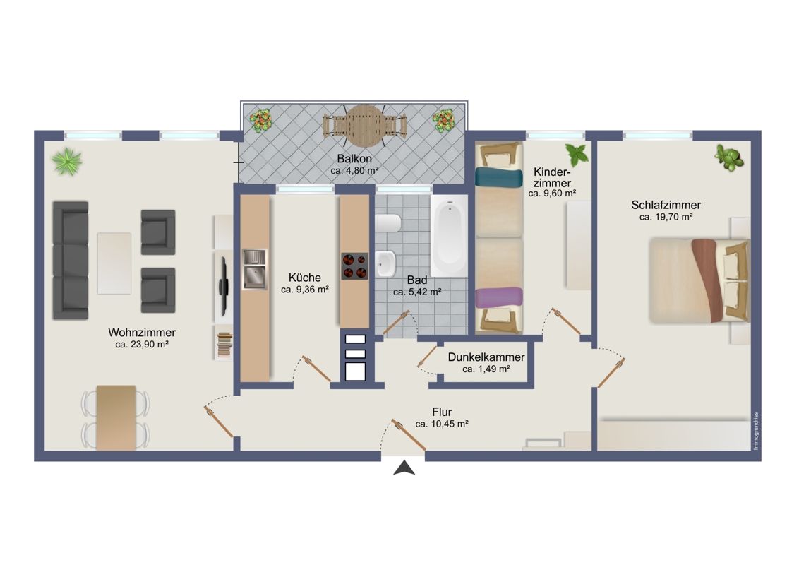 - Wohn-/Nutzfläche ca. 82,7 m²- Anzahl der Zimmer: 3