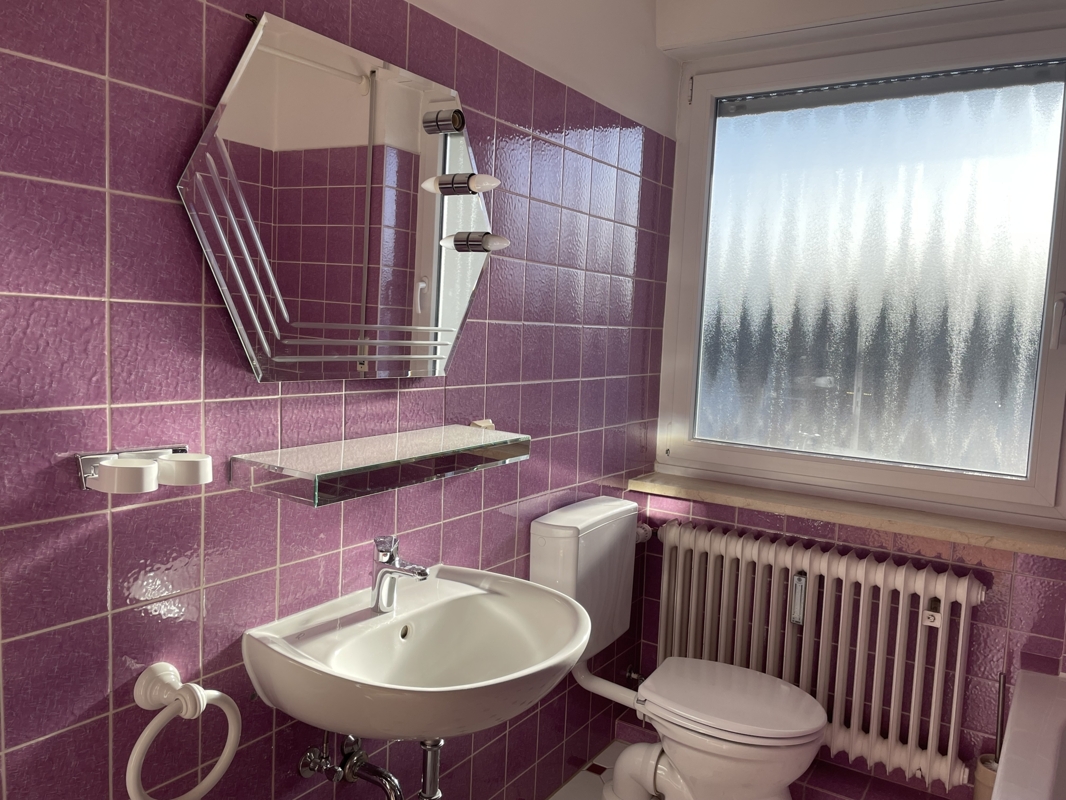 Beim Betreten dieser charmanten Eigentumswohnung aus dem Jahr 1971 werden Sie von einem großzügigen Eingangsbereich empfangen, der ausreichend Platz für eine Garderobe bietet. Von hier aus gelangen Sie direkt in das helle Wohnzimmer, das durch seine großzügige Fensterfront viel Tageslicht einfängt und einen Zugang zum Balkon bietet. Der Balkon ist nach Süden ausgerichtet und bietet zusätzlichen Raum zur Entspannung.Die Wohnung befindet sich im 2. Obergeschoss und verfügt über insgesamt drei Zimmer, die sich ideal als Schlafzimmer, Kinderzimmer oder Büro nutzen lassen. Die Räume sind gut geschnitten und bieten vielfältige Gestaltungsmöglichkeiten. Die Küche ist funktional gestaltet und bietet genügend Platz für eine kleine Essecke. Das Badezimmer ist klassisch gehalten und verfügt über eine Badewanne, die zum Entspannen einlädt. Zusätzlich gibt es einen Waschmaschinenanschluss im Bad, was den Alltag erleichtert.