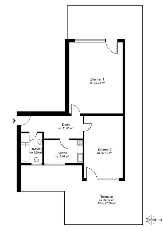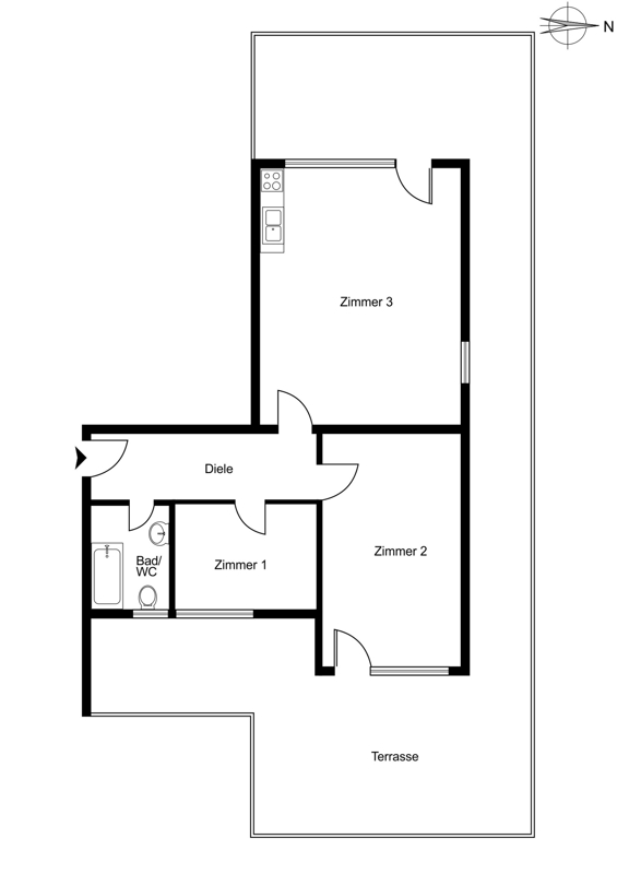 Das bisherige Küchenzimmer wird im Rahmen des Umbaus vergrößert und als eigenständiges drittes Zimmer neu geschaffen. Dieses zusätzliche Zimmer eignet sich ideal als Kinder-, Gäste- oder Arbeitszimmer und ergänzt den Grundriss sinnvoll. Die bauliche Umsetzung wurde geprüft und befindet sich aktuell in der Umsetzung.