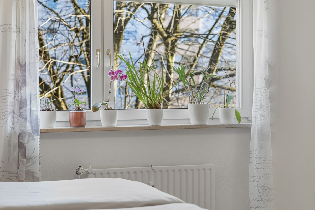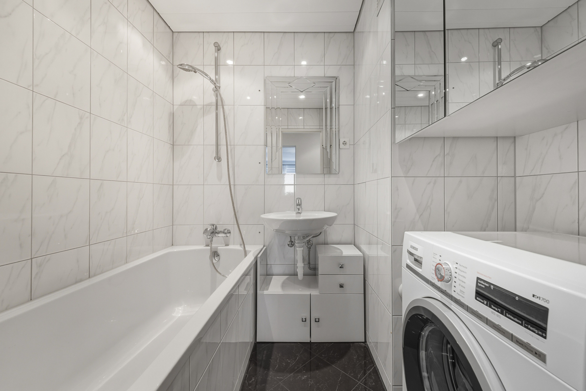 Der praktische Grundriss punktet mit einer klaren Trennung von Wohn- und Rückzugsbereichen. Zwei gut geschnittene Zimmer lassen sich flexibel als Schlaf-, Kinder- oder Arbeitszimmer nutzen. Das Badezimmer präsentiert sich modern und zeitlos, ergänzt durch ein separates Gäste-WC – ein spürbarer Mehrwert im Alltag. Eine zusätzliche Abstellkammer schafft wertvollen Stauraum und unterstreicht die Alltagstauglichkeit der Wohnung.