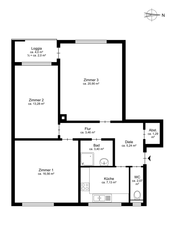 Stilvolle 3-Zimmer-Wohnung mit Loggia – hochwertig, ruhig & top gepflegt